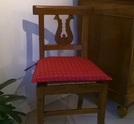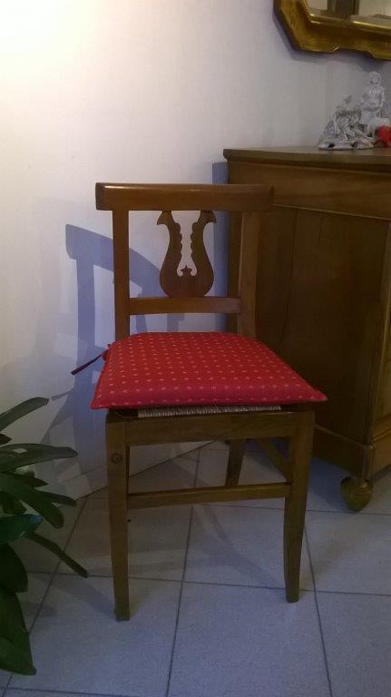 Cuscini per sedie di gusto neoclassico.