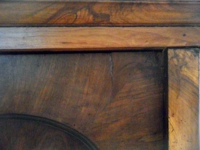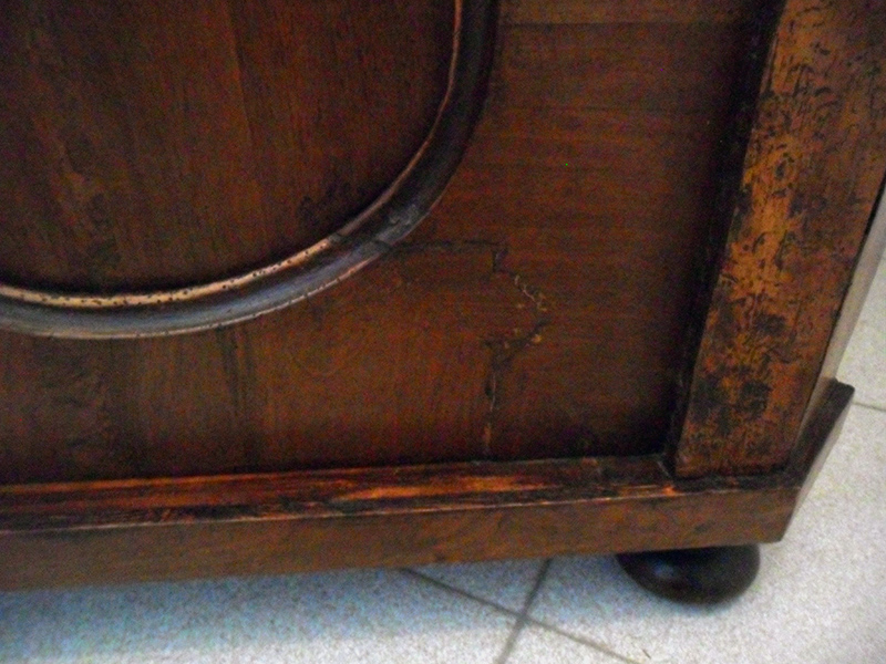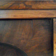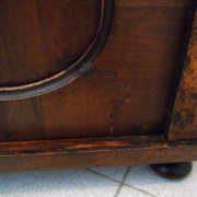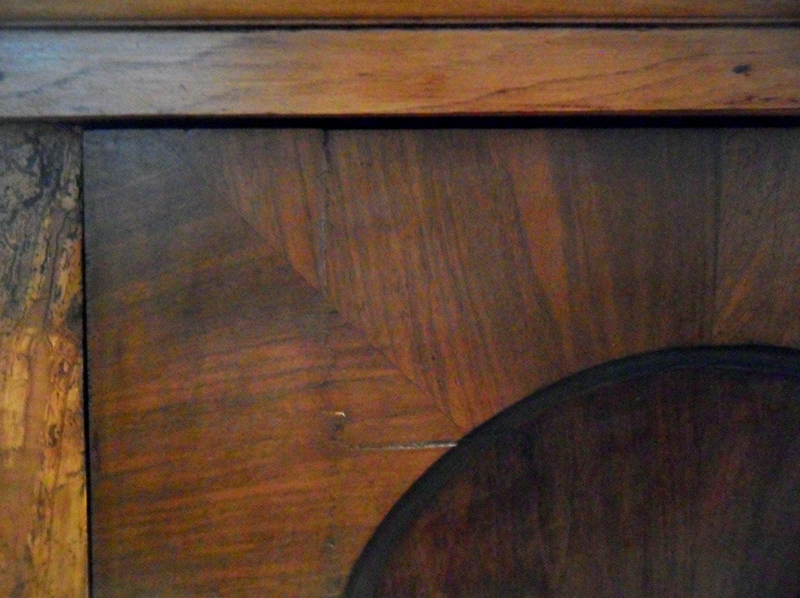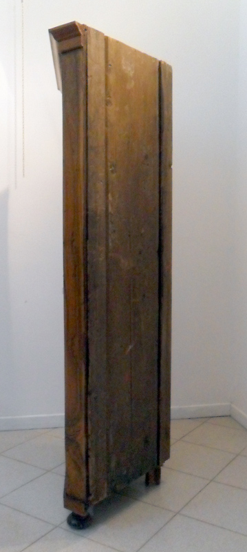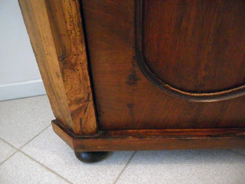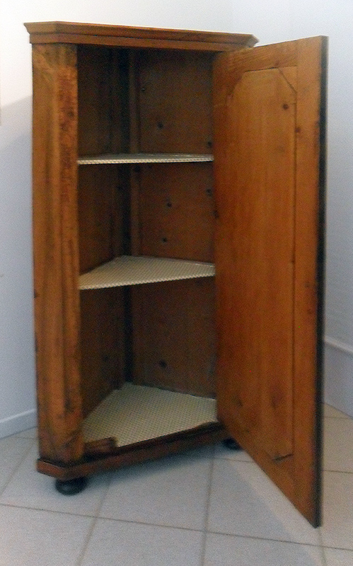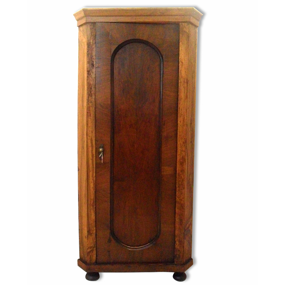 Angoliera in noce lastronato composto da una unica anta con fodrina stondata, piedi a cipolla