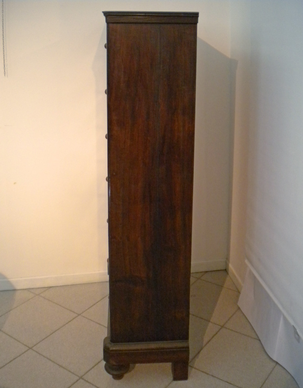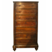 Settimanale in noce massello e impiallacciato. Sette cassetti incorniciati piedi anteriori a cipolla.