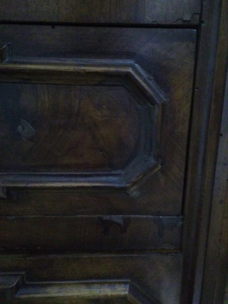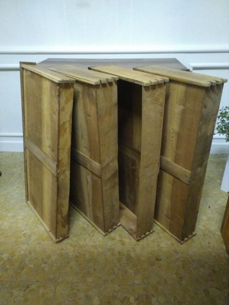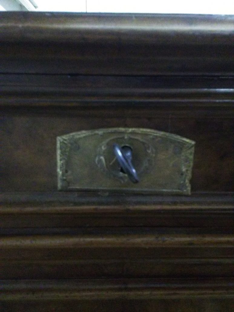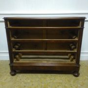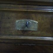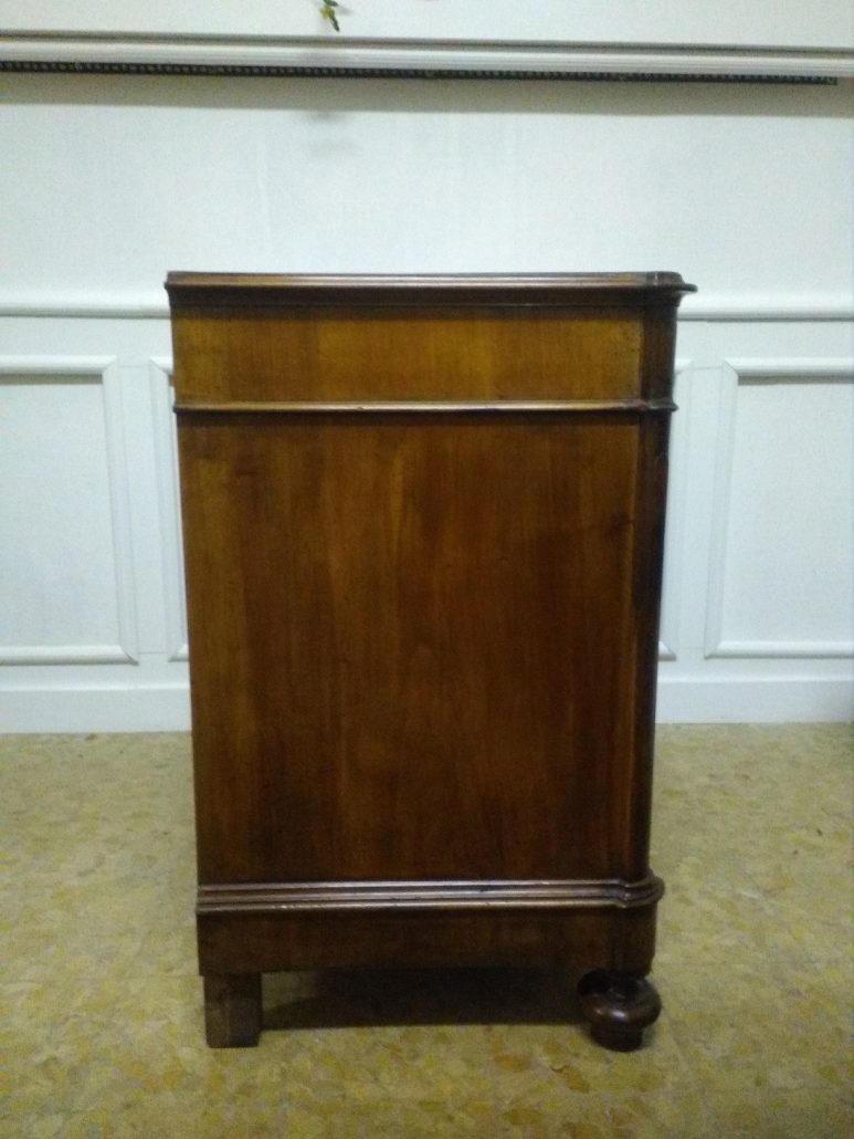 Particolarità: Il mobile ha subito un restauro non da un esperto, alcune parti di cornici sui frontali dei cassetti sono state reintegrate con dello stucco tinto (vedi fotografie).