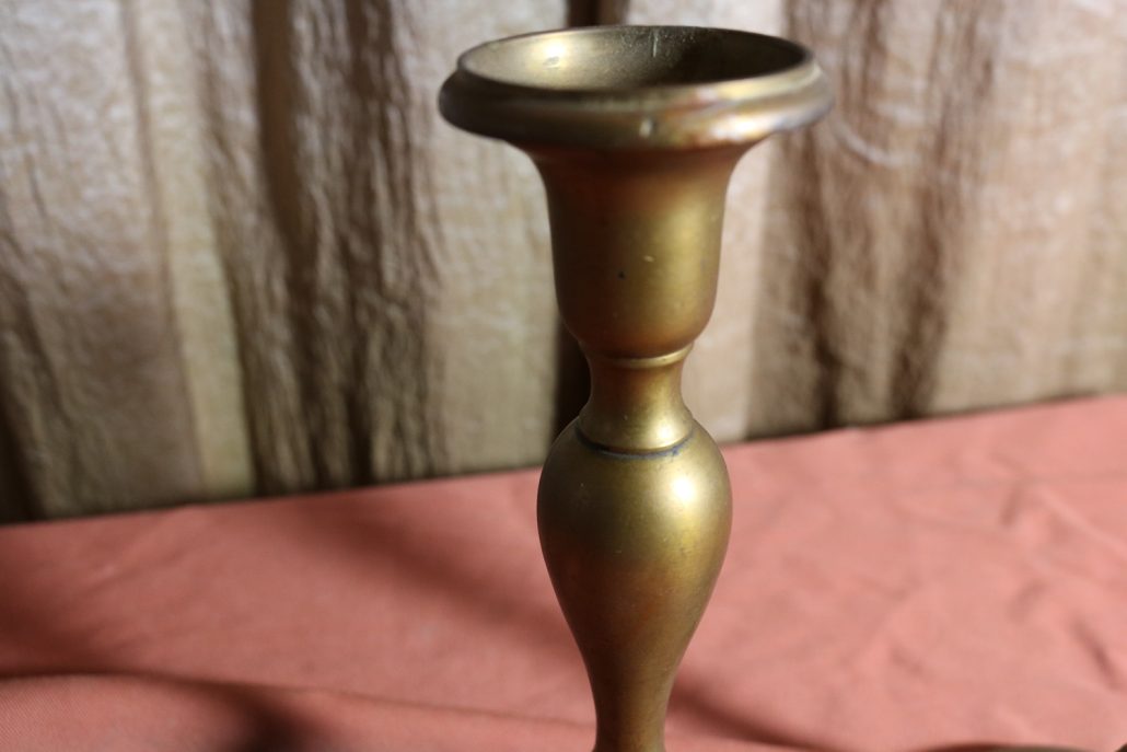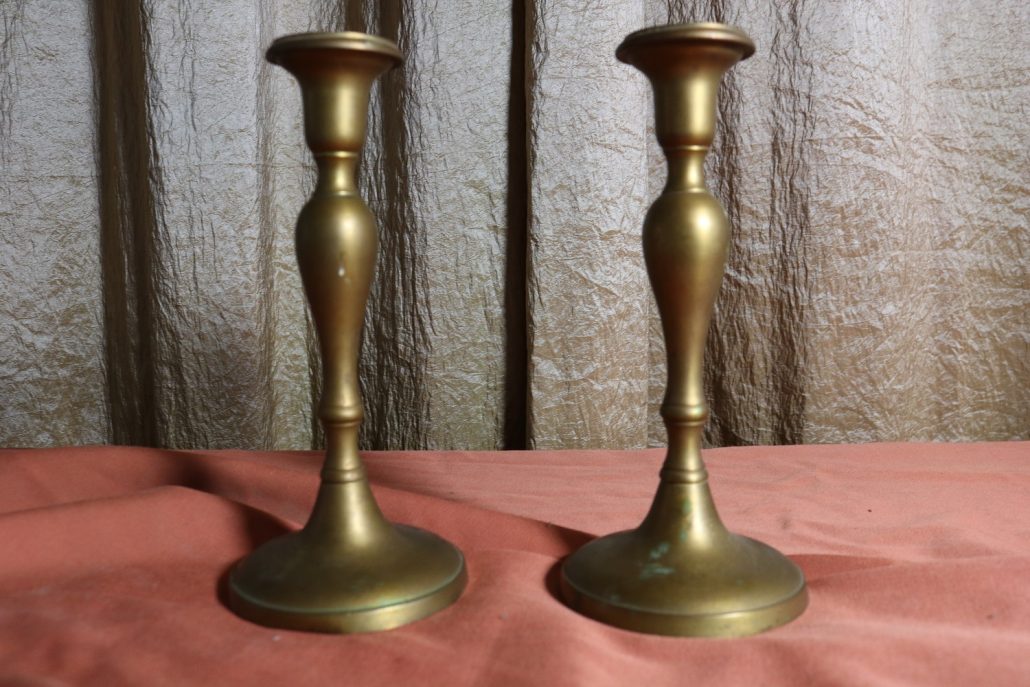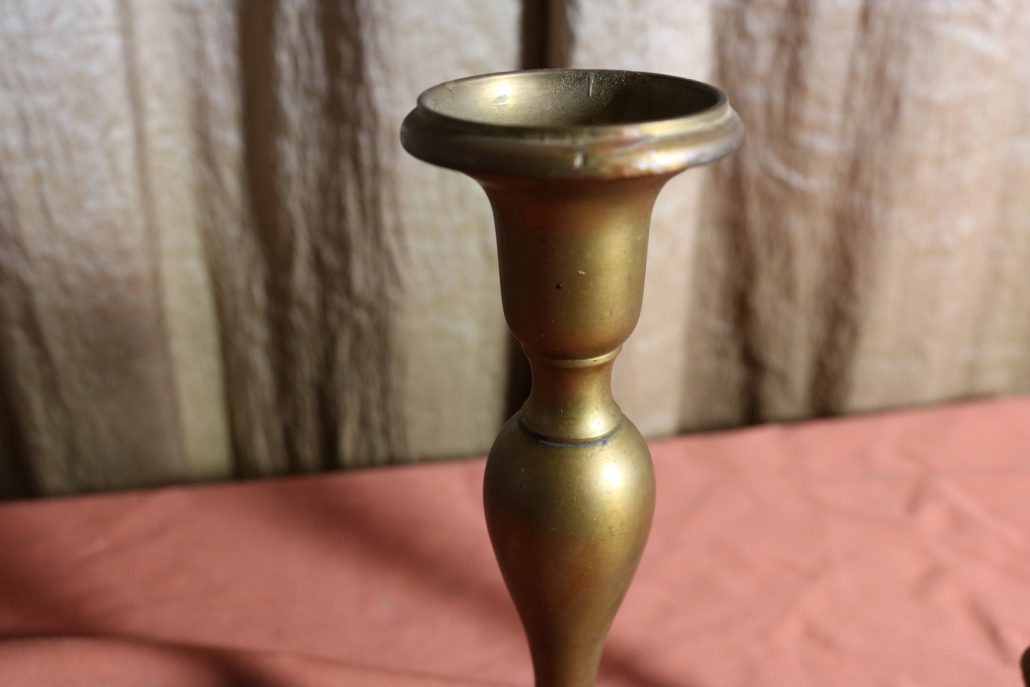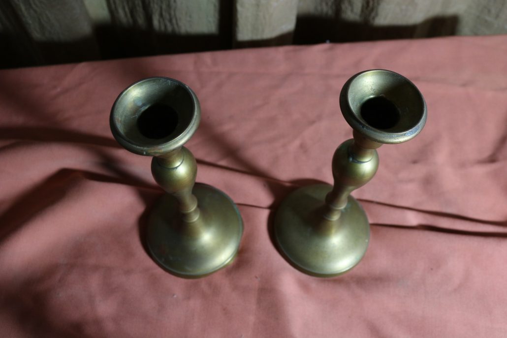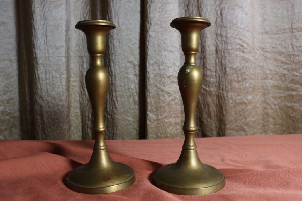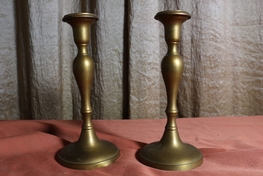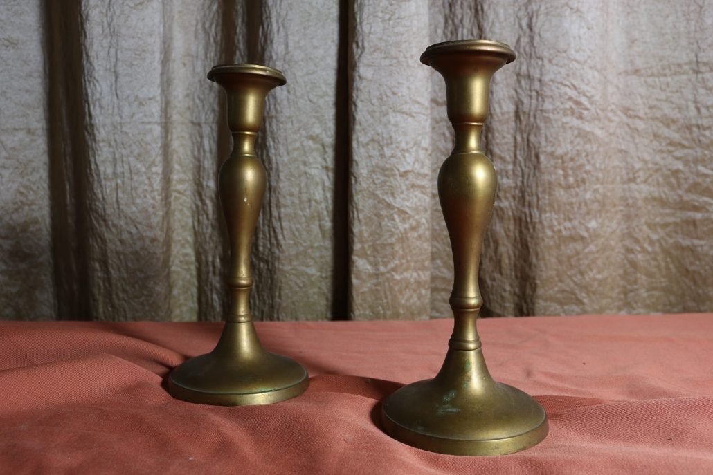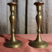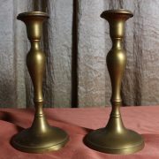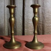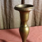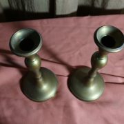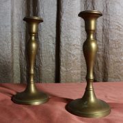 Da una base circolare si sviluppa il gambo che attraverso una tornitura prende la forma quasi a calice per poi tornare del diametro iniziale e, dopo una strozzatura si apre il supporto per la candela. Semplici ma di bella fattura e discreta eleganza