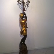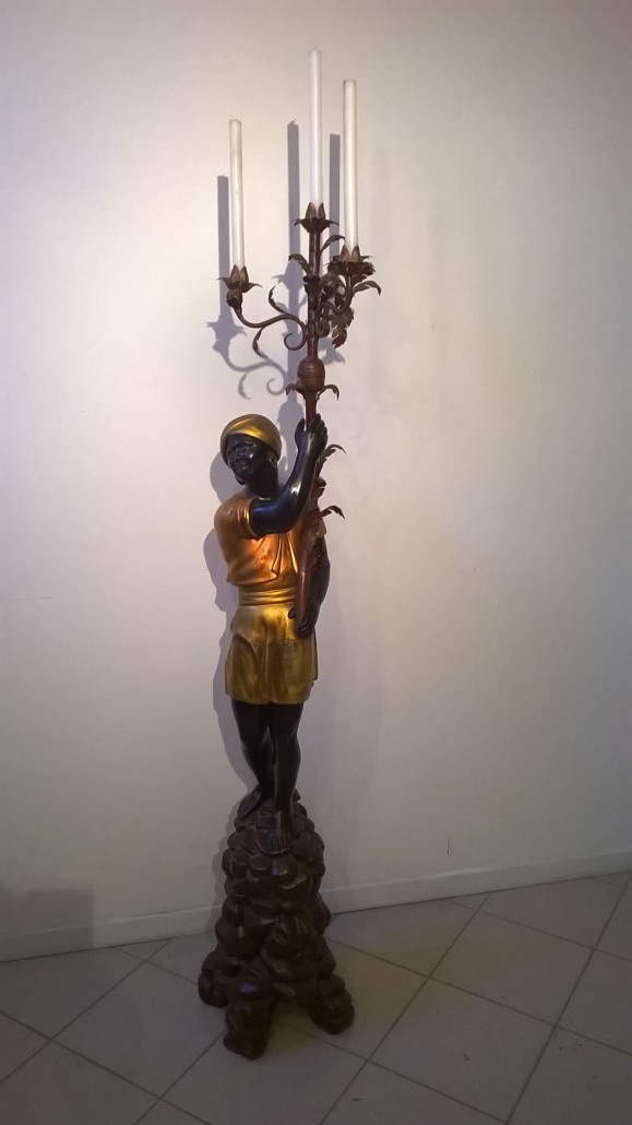 Grandi candelieri a foggia di moro sostenti porta candele in ferro battuto.