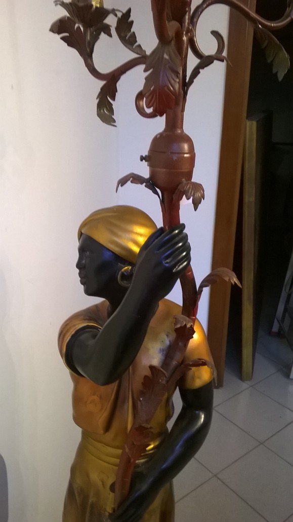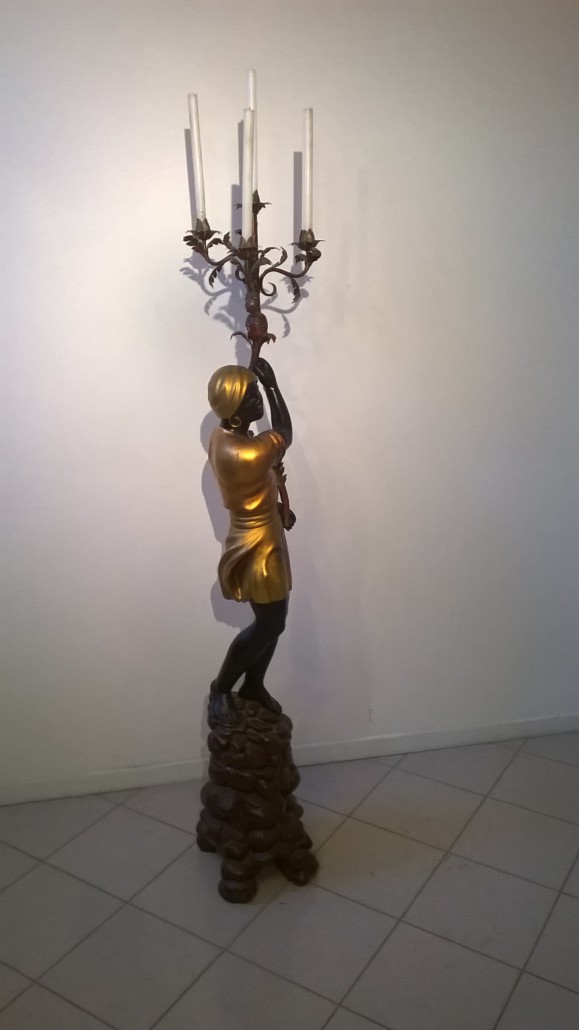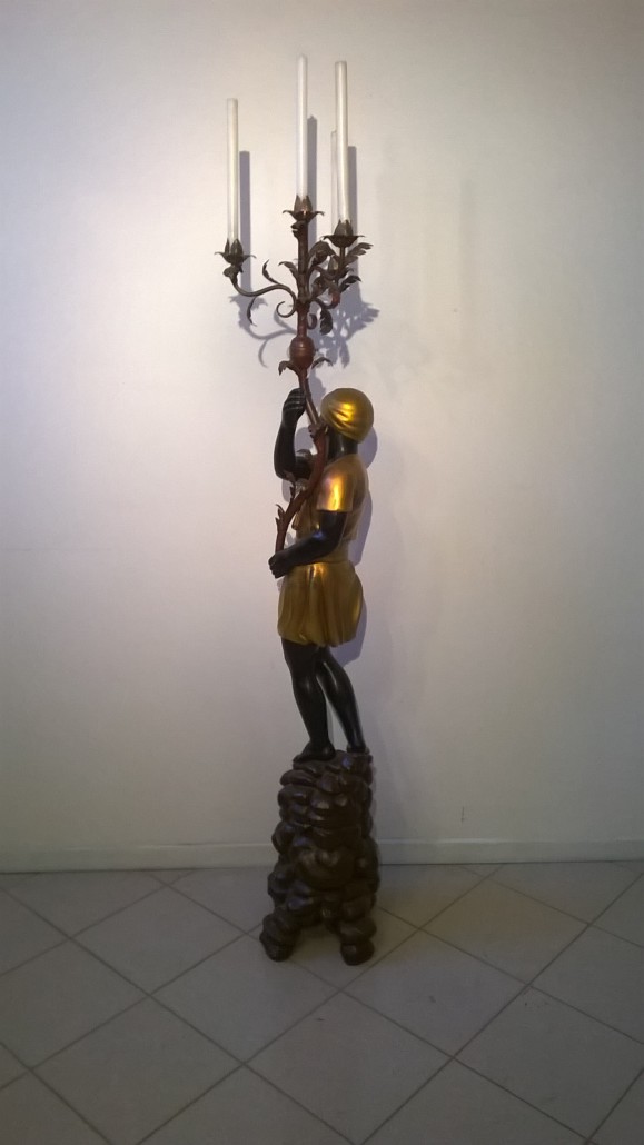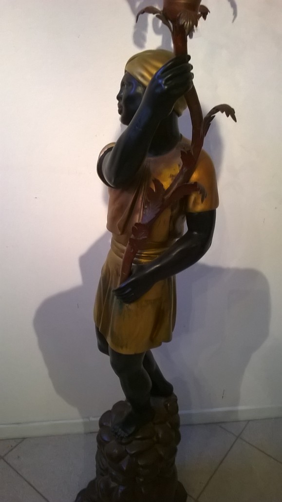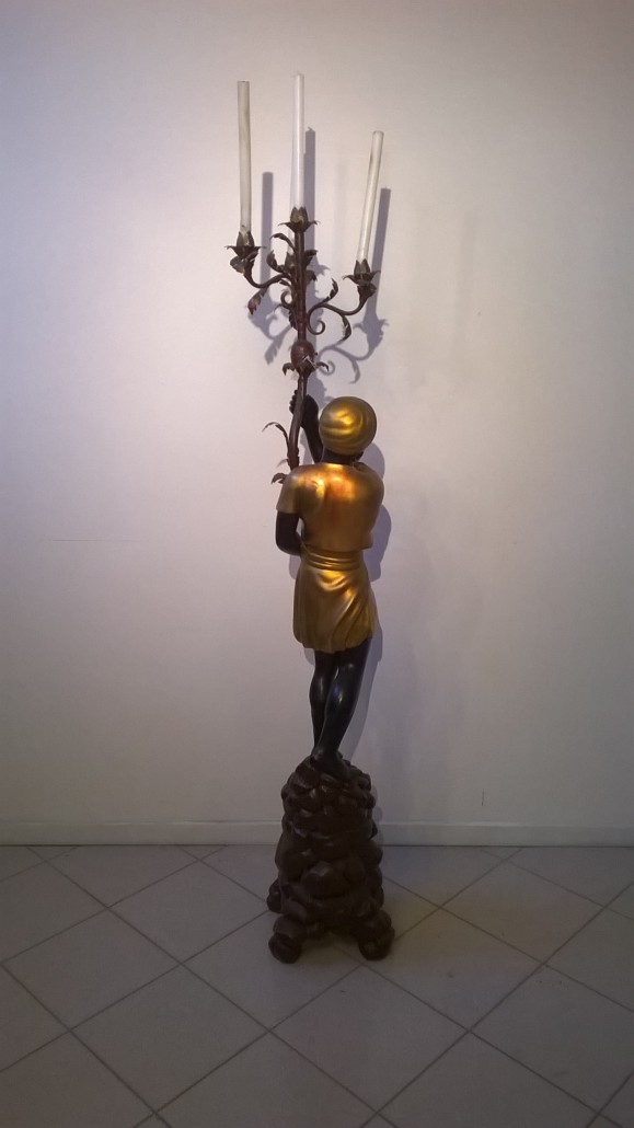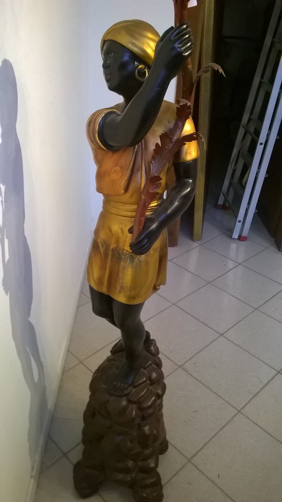 Le sculture rappresentano un abitante dell’Africa abbigliato con ricchi panneggi dorati con il classico copricapo a turbante, in piedi su un cumulo di rocce.