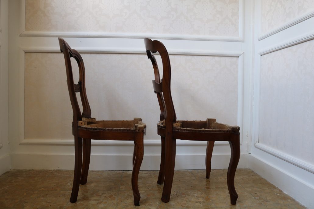 Sedie nel più classico gusto Luigi Filippo che per dimensioni e decorazione vengono adibite solitamente a sedie da camera o da anticamera.