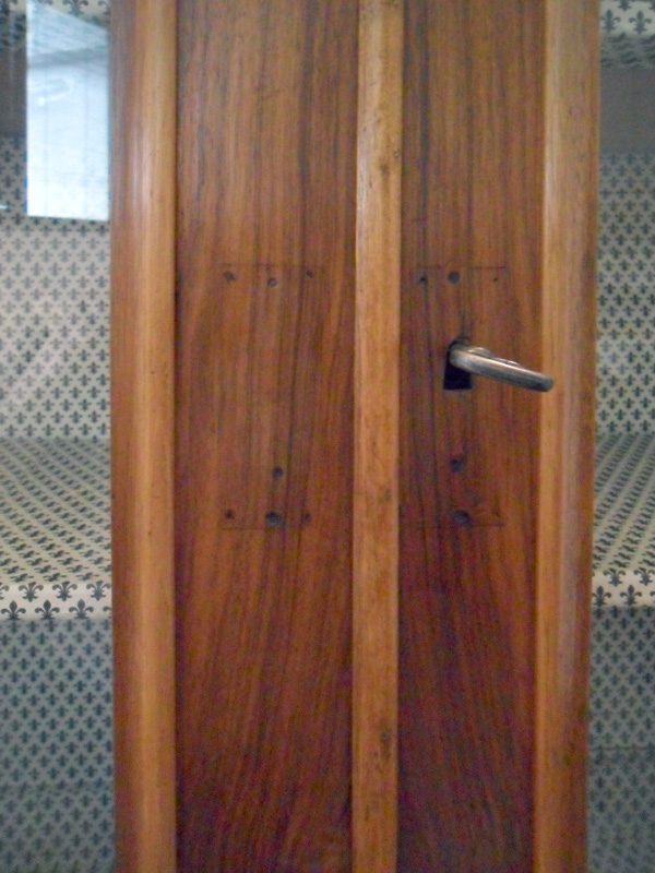 Particolarità: Vetri non originali e piedi sostituiti. Presenta segni, in vicinanza delle bocchette, di ferramenta applicata.