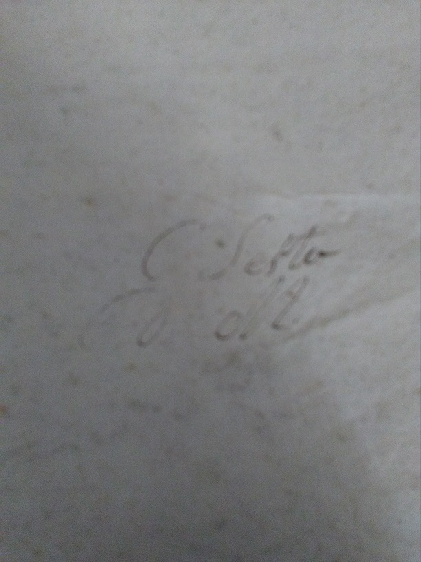 Particolarità: Sul retro del foglio appare una sigla e una firma poco decifrabile (vedi foto).