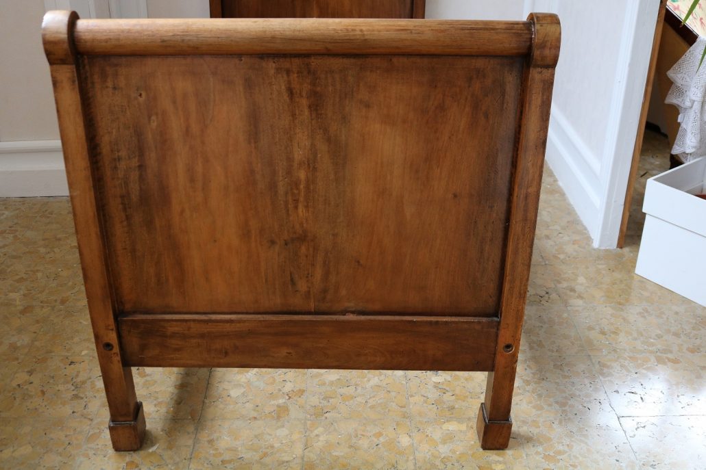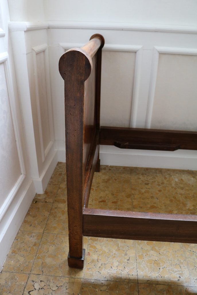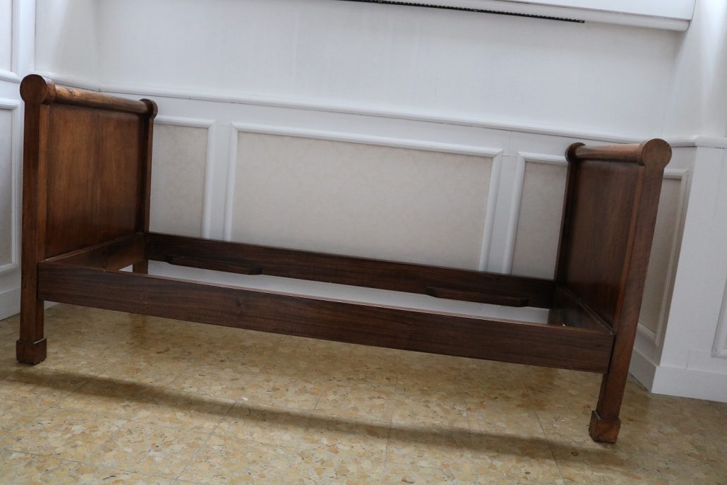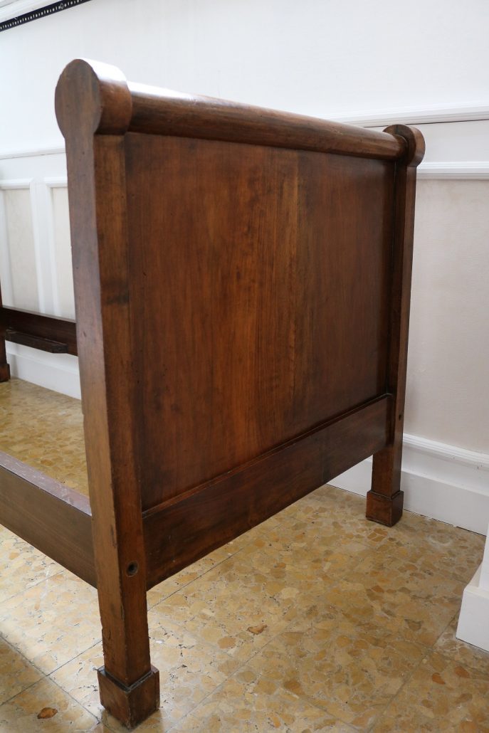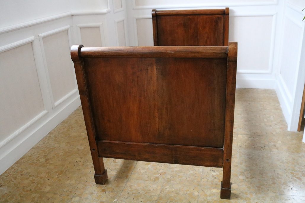 Letto in noce masello. Arredo appartenente al primo periodo impero. Costituito da una testa e una piediera di medesime dimensioni e decorazioni.