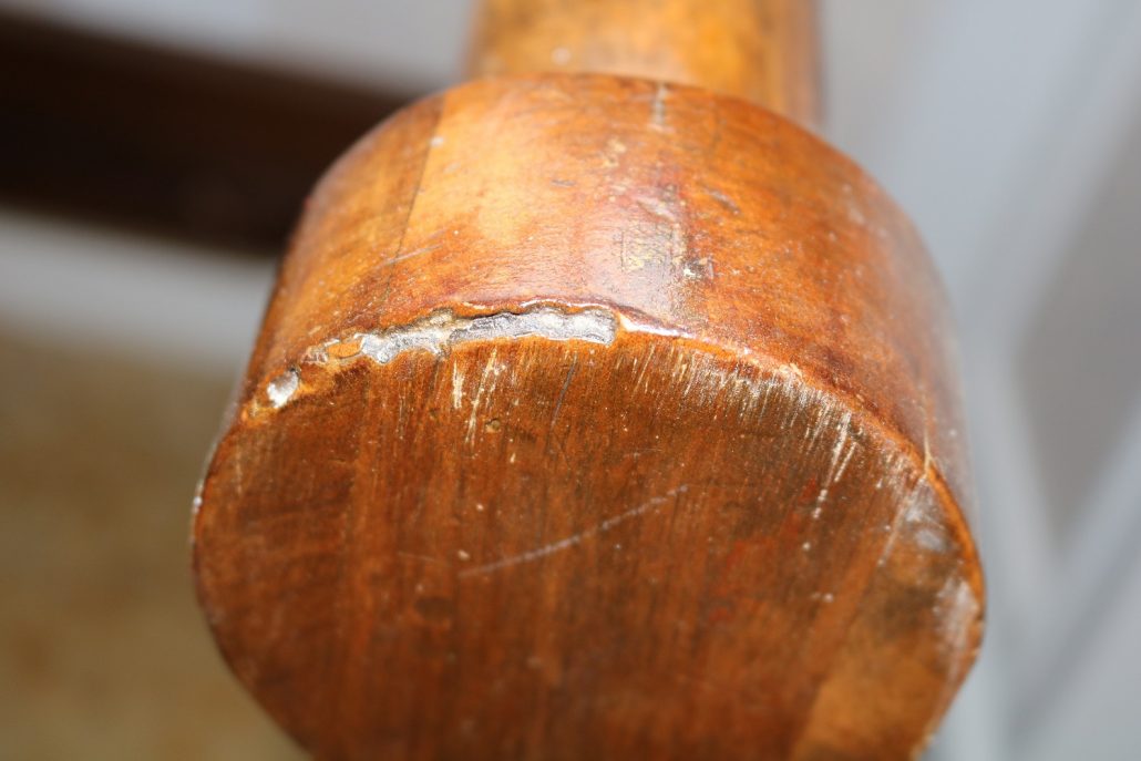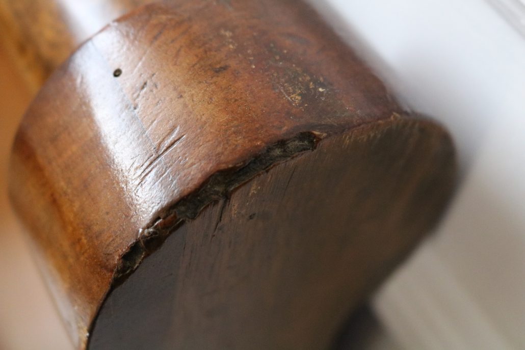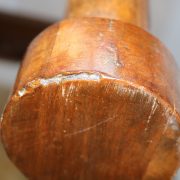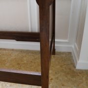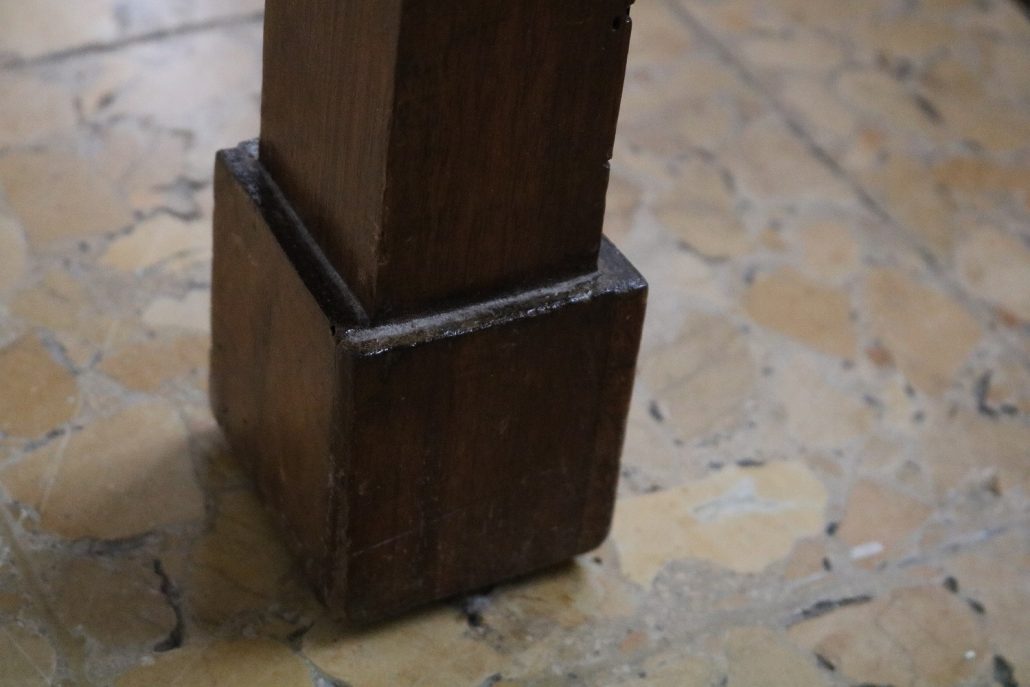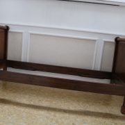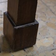 Due montanti squadrati, con piedi a plinto, salgono terminando con una sagoma tonda, a cui si innesta il traverso di medesima sezione della fodrina.