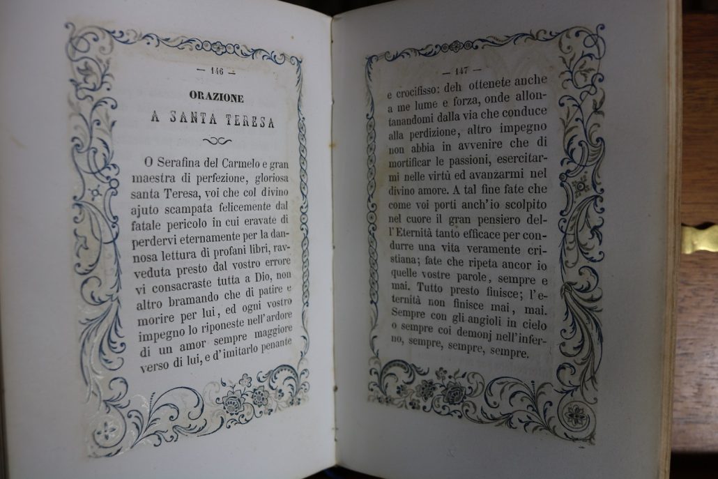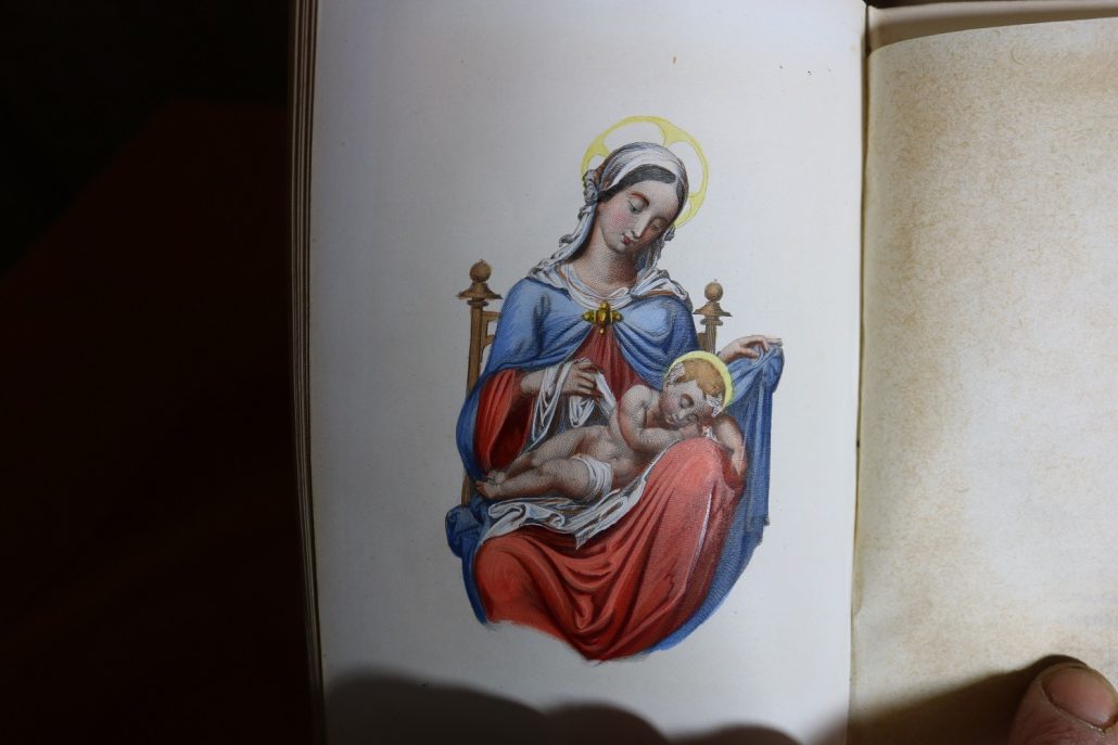 All’interno il libro presenta delle tavole policrome raffiguranti santi, orazioni e preghiere.