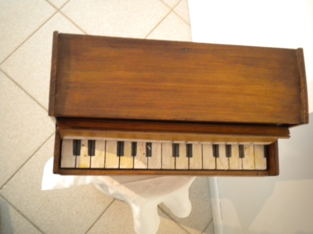 Modellino di pianoforte (suona veramente) in legno di ciliegio e pioppo dipinto