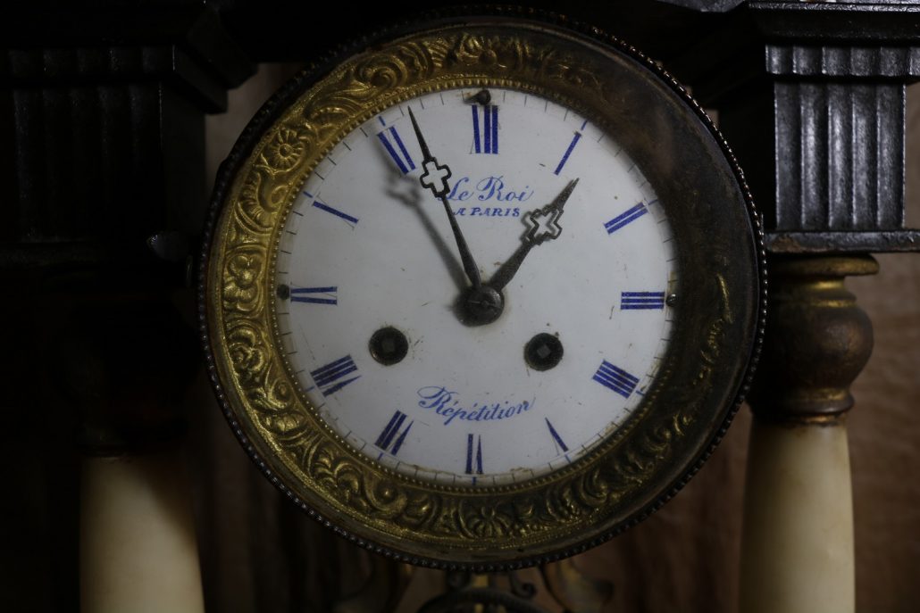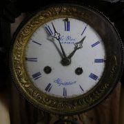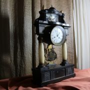 Tra le colonne trova posto il grande quadrante racchiuso in una cornice dorata e cesellata.