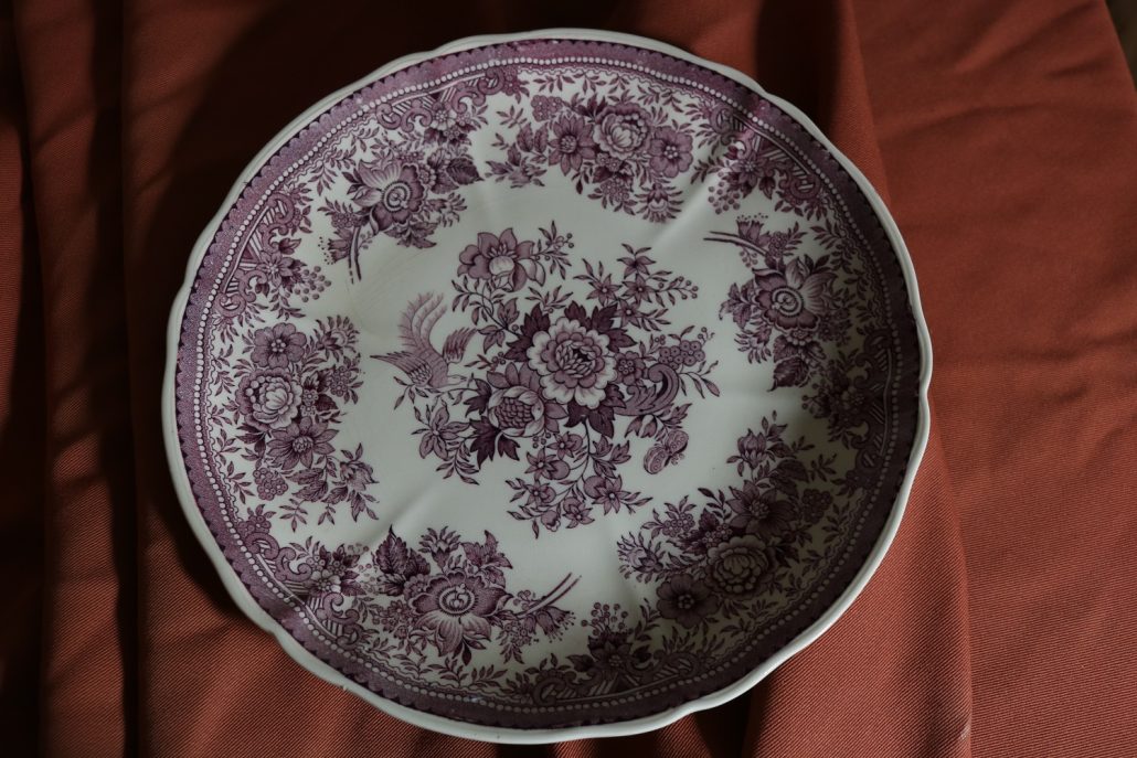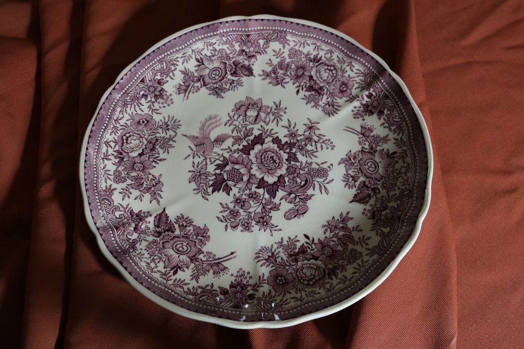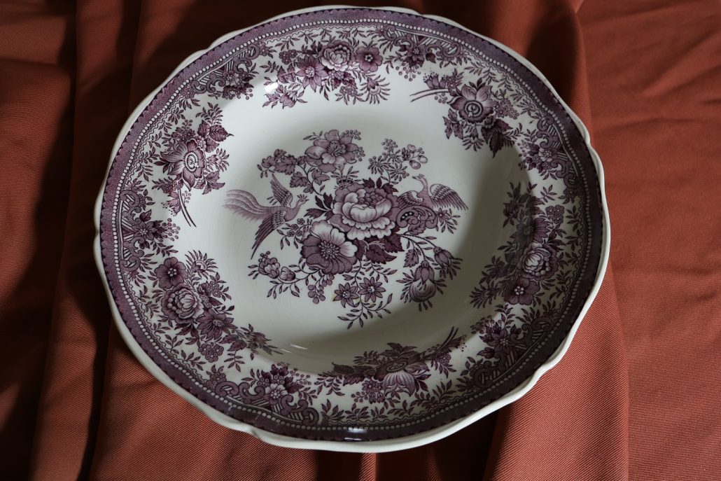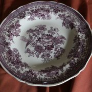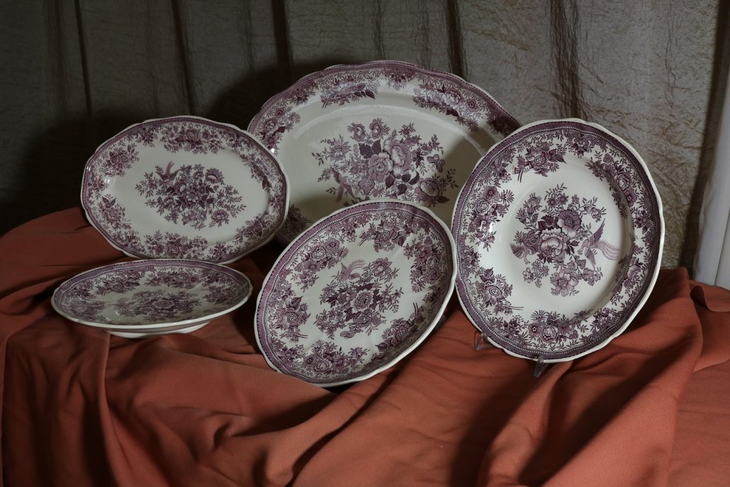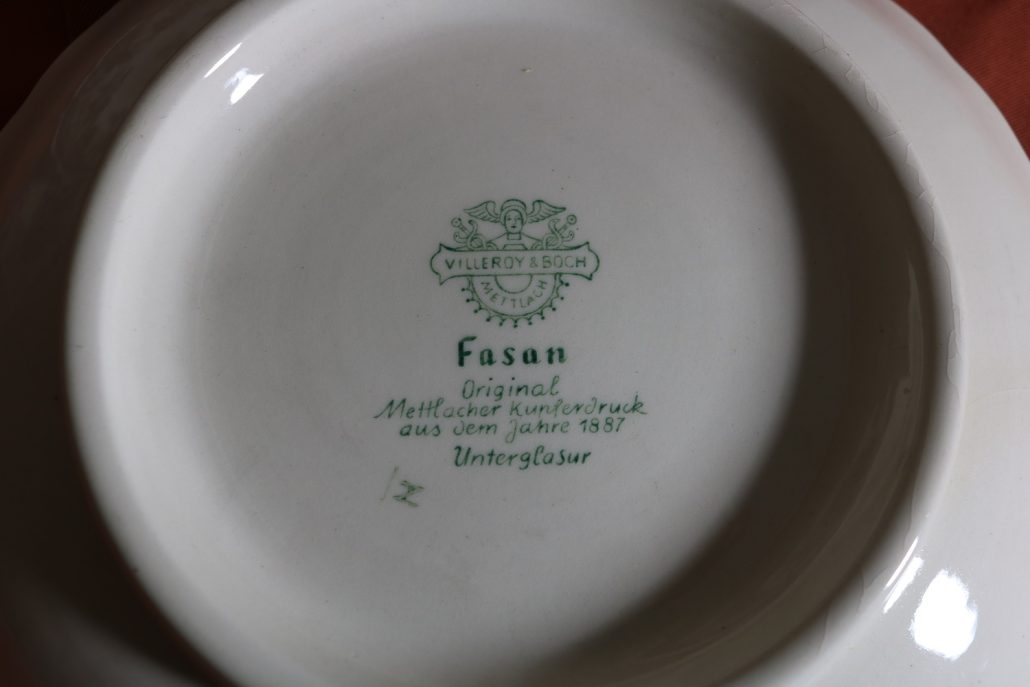 Parte di servizio di paitti “Fasan” Villeroy e Boch. Composto da un grande piatto ovale da portata (46 cm x 30 cm h 4 cm), un piatto da portata ovale più piccolo (33,5 cm x 23 cm h 3 cm), un piatto fondo (d. 25,5 cm h 4 cm) e due piatti piani (d. 23 cm x h 4 cm). In perfette condizioni, presentano una decorazione floreale nei toni del rosa.