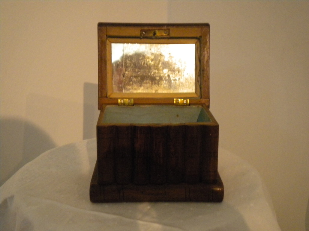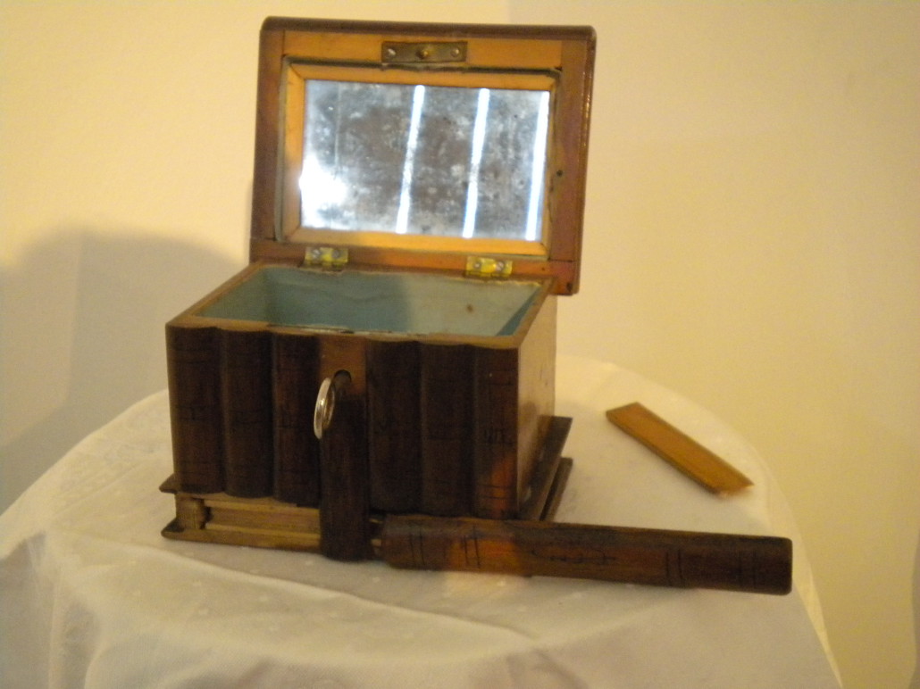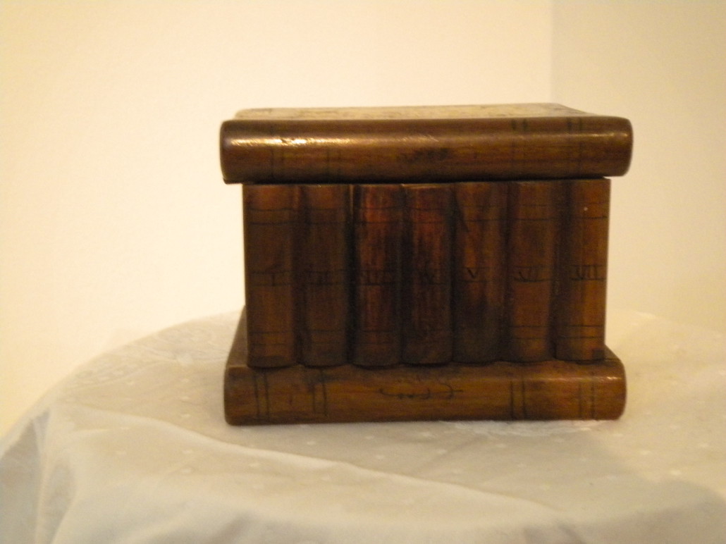 Scatola porta gioie con segreto. di forma quadrata a imitazione di composizione di libri. 7