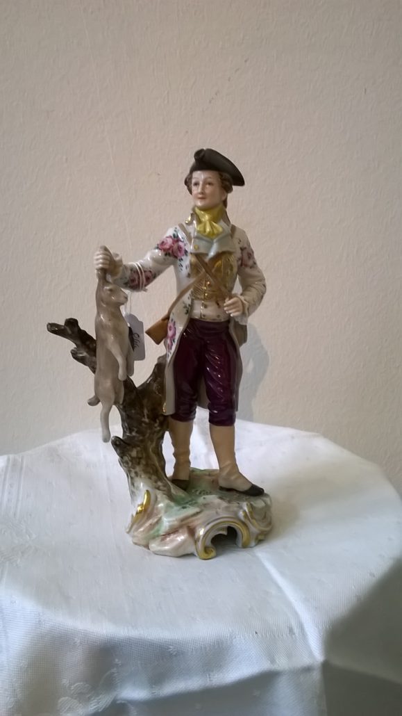 Cassettone-canterano in noce massello Carlo X, quattro cassetti di cui il primo a ribalta celante quattro cassettini, vano a giorno e due cassettini con scatto segreto. Linea semplice e piedi a mensola.