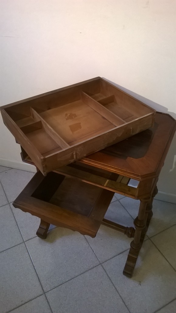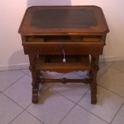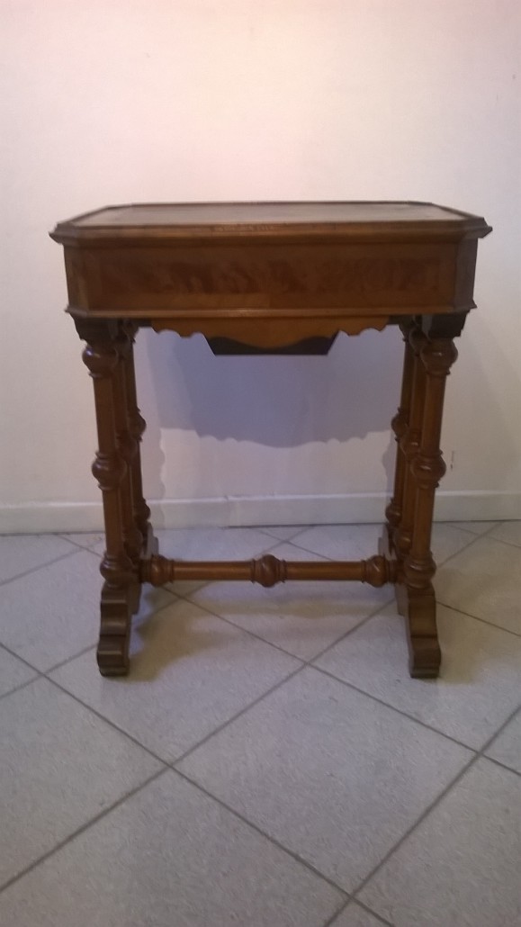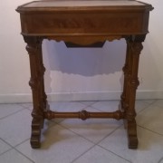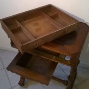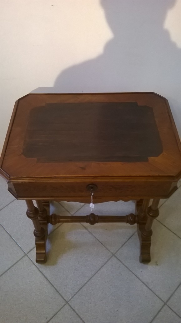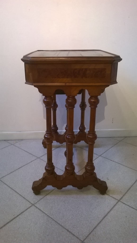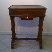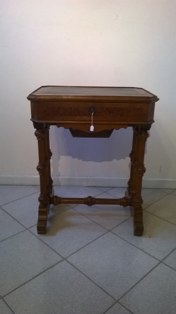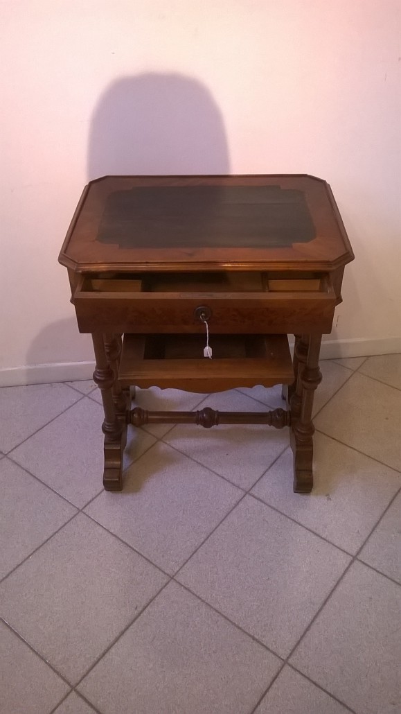 Tavolino da lavoro, cucito e ricamo, in noce e lastrone di noce.