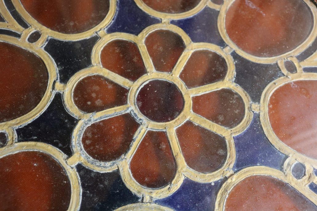 Gli elementi compongono una decorazione a rosone e sono montati attraverso la tecnica della piombatura.