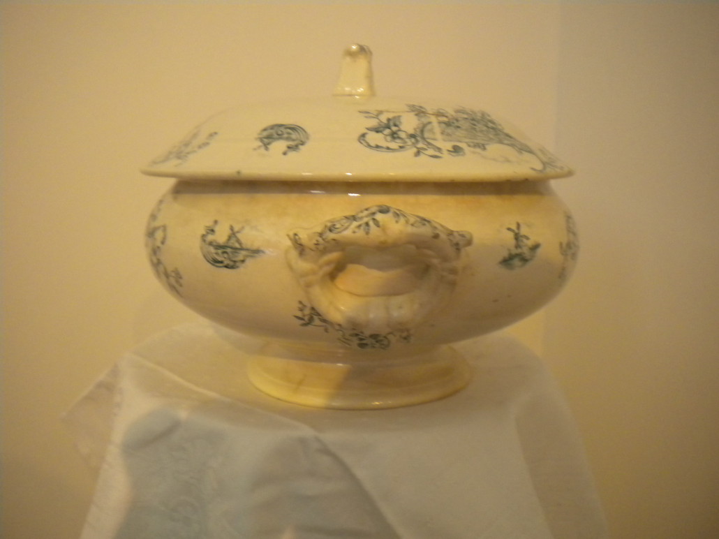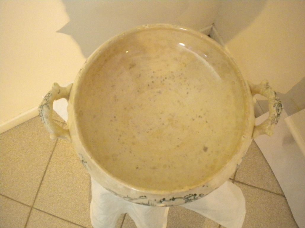 Zuppiera in maiolica con decorazioni “alle fiandre” in verde.