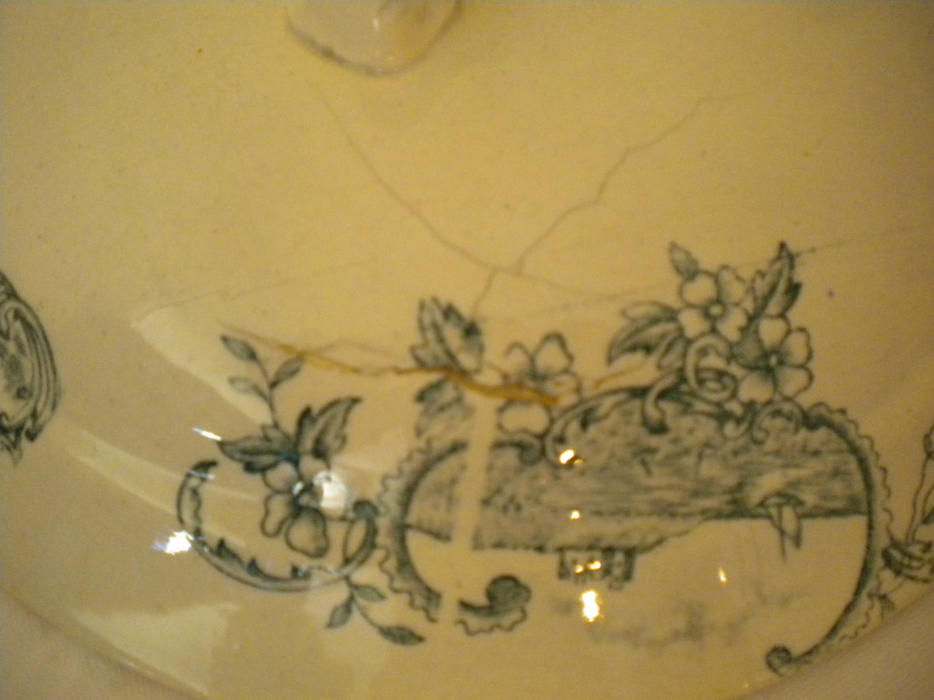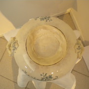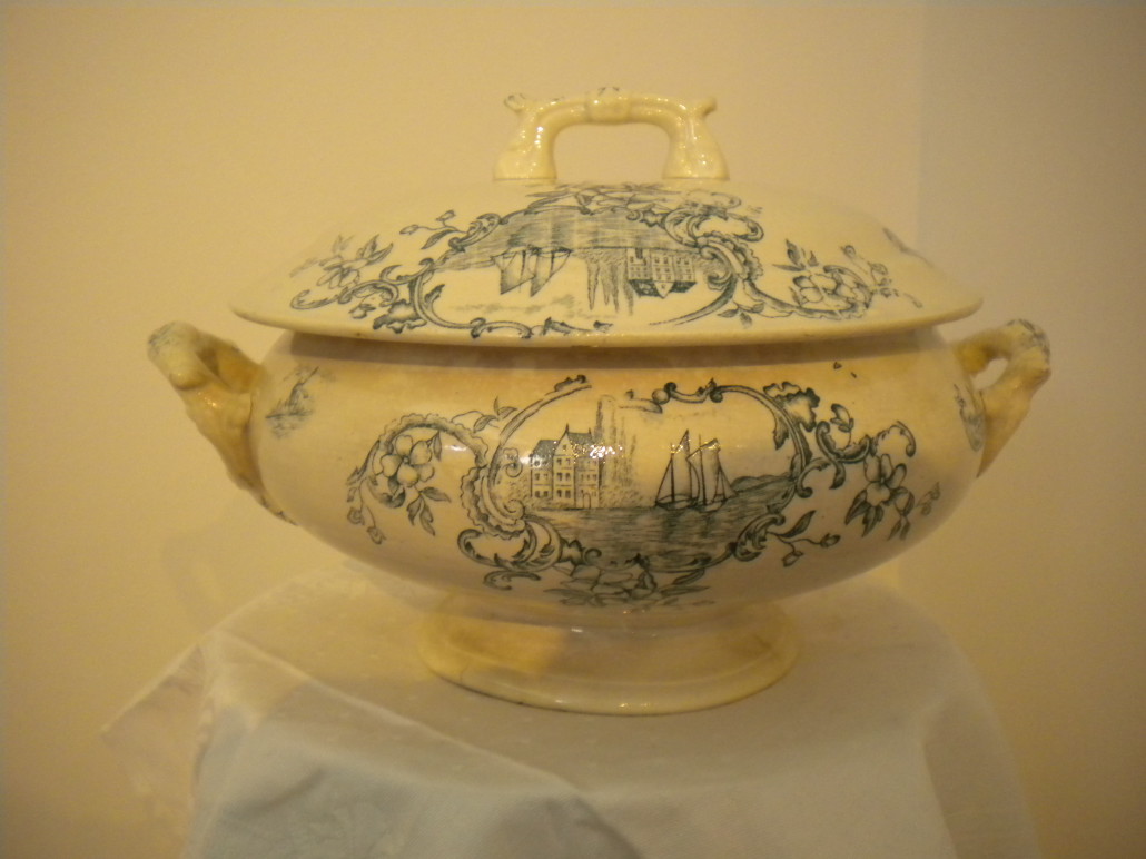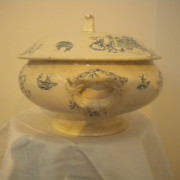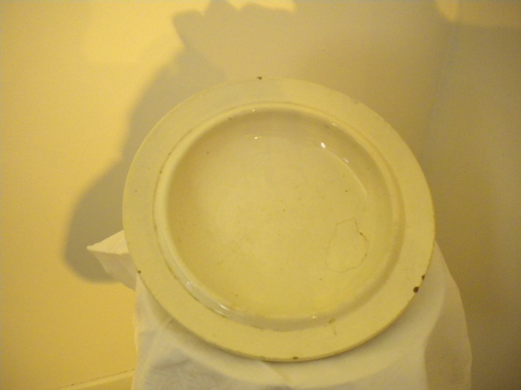 Particolarità: leggera incrinatura del coperchio, il piatto è perfetto e con marchio “marine”.